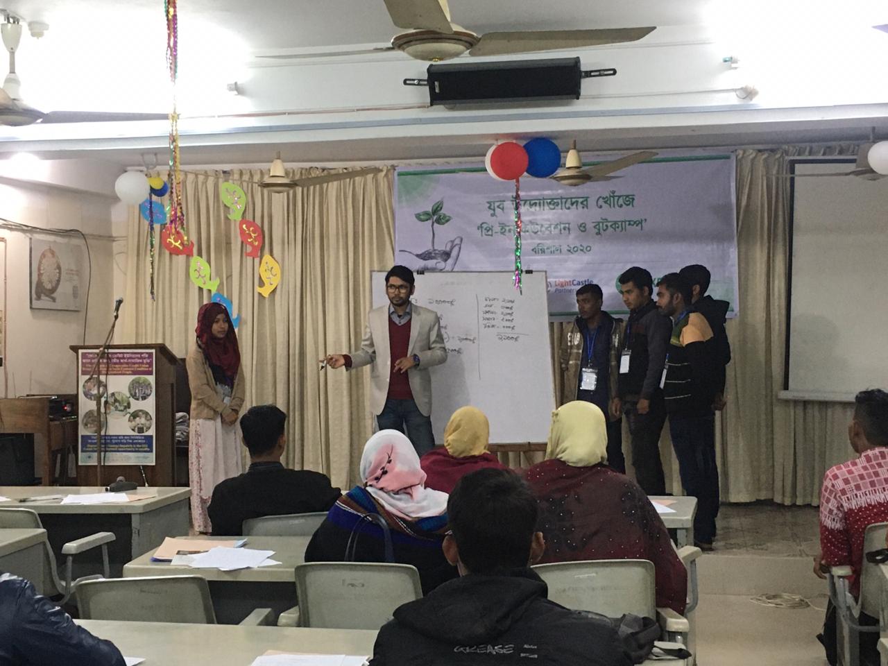 In the second phase of the accelerator program, a pre-incubation session and boot camp were facilitated by LightCastle Partners at Caritas Learning Center, Barishal on January 8 and 9. Out of the 100+ applicants, 60 applicants were shortlisted and invited to attend these sessions. The sessions pertained to the introduction to basic topics of business, entrepreneurship, accounting, and green business. Extensive discussions on how to increase productivity, tactics which would help raise income, provision of loans were the prime areas the participants looked forward to. It also discussed in detail, the next step of the competition which was the interview stage to be held on the next day.