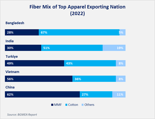 Figure 4: Trend of percentage of fiber mix for top apparel exporting nation (2022)[7]