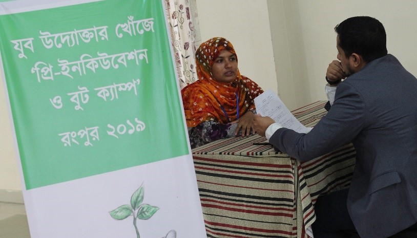 Following the roadshows, the team organized a day long pre-incubation session at the BRAC Learning Center, Rangpur, on October 28, 2019. A total of selected 57 entrepreneurs attended the sessions on topics covering basic business model, business planning and financial essentials.